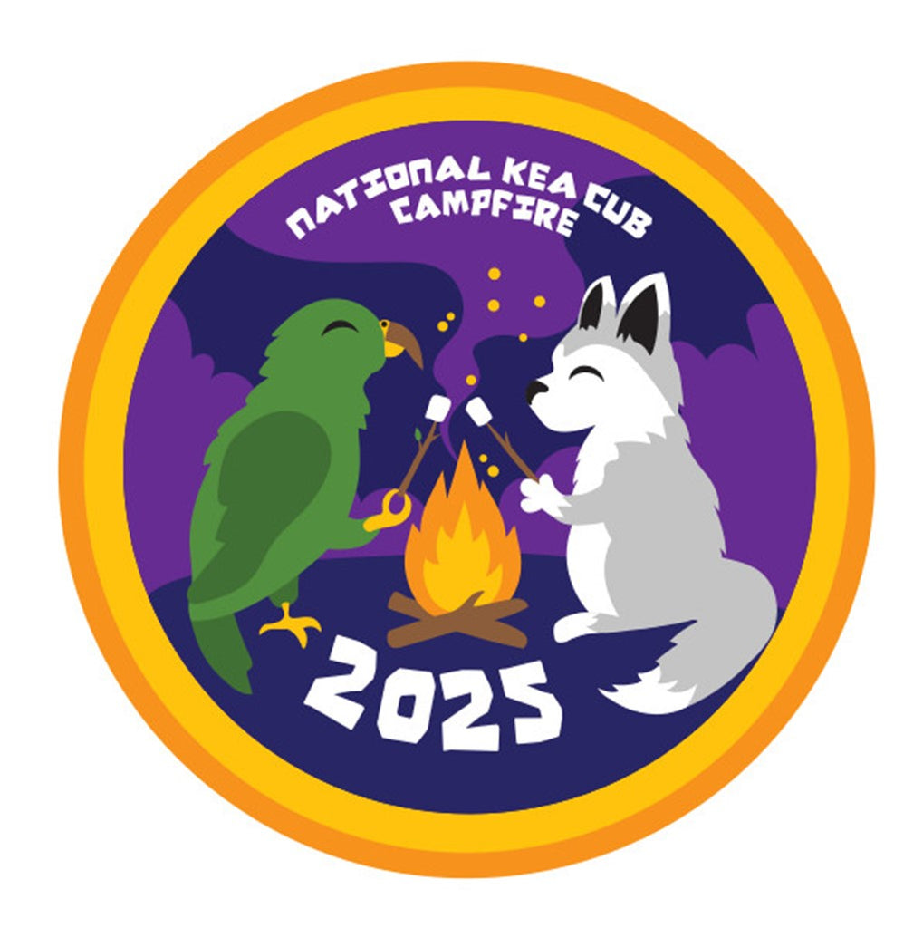 National Kea Cub Campfire 2025 badge. Round - 65mm.